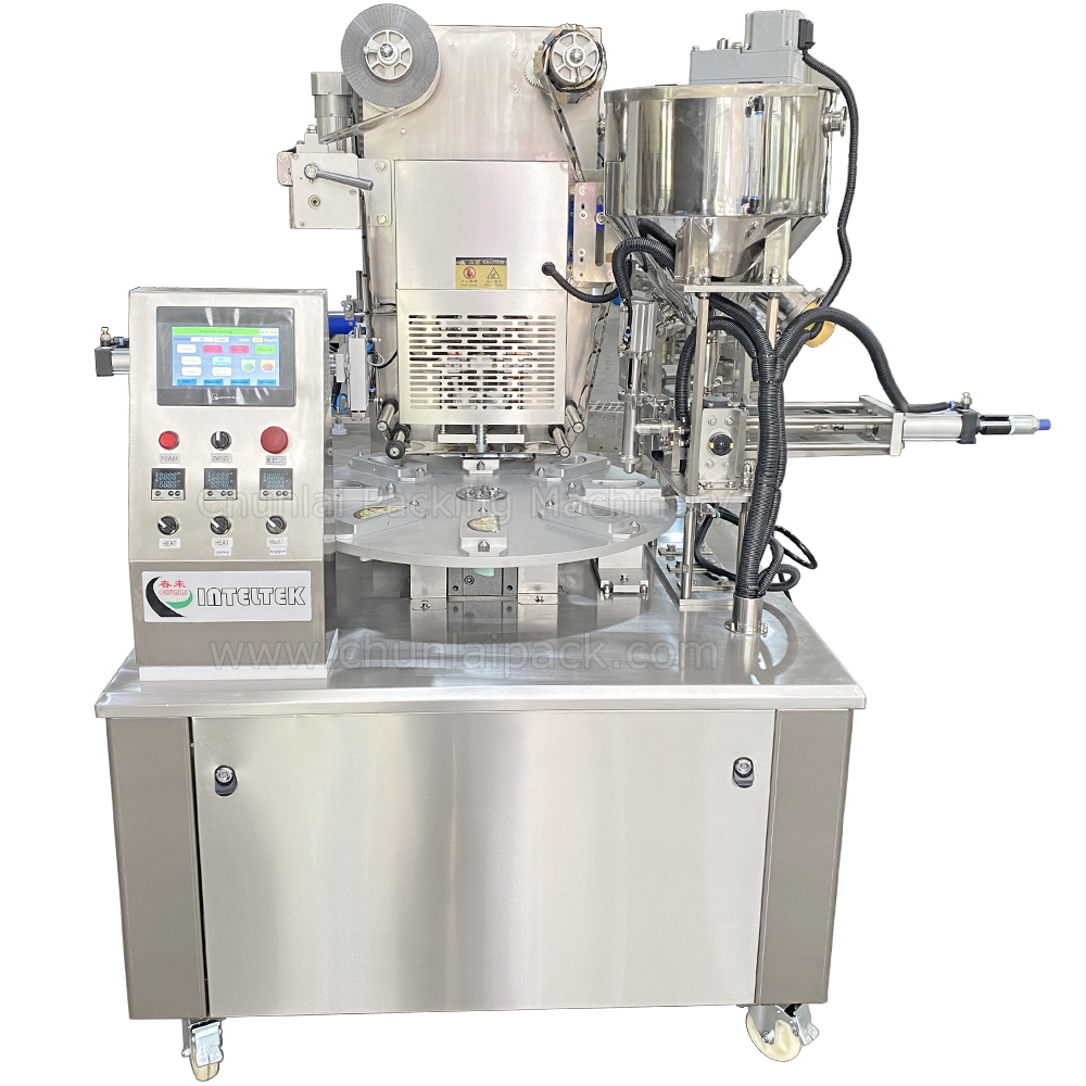 ✅ In short: A rotary cup filling sealing machine with dual-filling system (chocolate + biscuits) is the standard choice for finger biscuit chocolate dipping snack packs.
