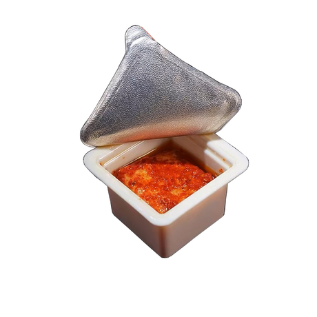 Fermented Bean Curd: machine can denester empty cups, fermented bean curd feed manually, sauce filled automatically, pre-cut lid apply, seal and cup feed out